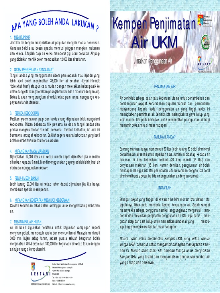 Sebenarnya, ada cara yang berkesan untuk menjimatkan penggunaan air cond dengan cara yang betul. Kalau selama ini mandi setengah jam, cuba kurangkan jadi 15 minit sahaja. Pengguna boleh merujuk label barangan sebelum membeli sesuatu produk untuk memastikan produk tersebut adalah. .penjimatan penggunaan air adalah amat penting untuk menjamin keseimbangan ekosistem dan keselesaan hidup manusia. Syed hussain, tuan pah rokiah and ismail, hamidi and ayob, wahida (2004) sikap masyarakat terhadap penggunaan bekalan air bersih: