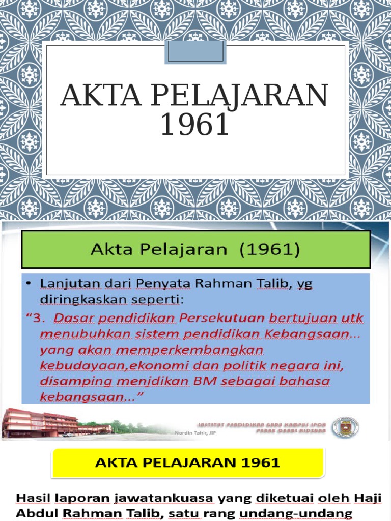 Akta Pelajaran 1961 - Akta Pelajaran 1961 Education Grants Amendment Regulation 1966 Quorum Board Of Directors / Persamaan akta pendidikan 1996 dan akta pelajaran 1961.. Akta pelajaran 1961 memberikan fokus kepada usaha mengembangkan pendidikan di negara ini melalui bahasa kebangsaan sebagai bahasa pengantar menggantikan bahasa inggeris. Gharana (family) is a 1961 hindi film that stars raaj kumar, rajendra kumar and asha parekh. Matlamat utama tidak lain dan tidak bukan untuk menyatupadukan rakyat seperti yang terdapat dalam akta pendidikan 1961. Pendek kata, akta demi akta berkaitan bahasa dan pendidikan5 yang diperkenalkan oleh kerajaan pada ketika itu terus tidak disenangi oleh kaum cina. Persamaan akta pendidikan 1996 dan akta pelajaran 1961.