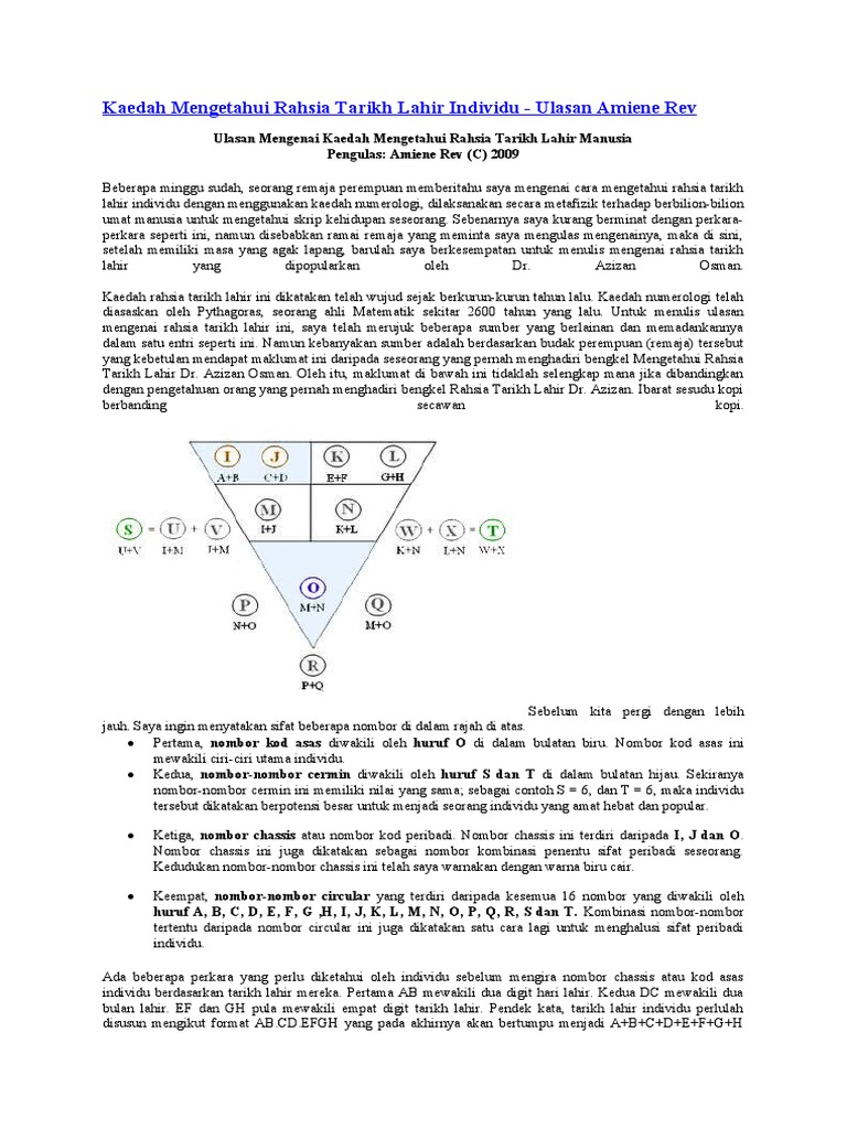 Ikutilah pencerahannya daripada dato' dr danial. Kami mengumpulkan soal dan jawaban dari tts (teka teki silang) populer yang biasa muncul di koran kompas, jawa pos, koran tempo, dll. Sesuaikah karakteristik sifat anda berdasarkan surat di atas ? Dilahirkan untuk menjadi seorang pemimpin, memiliki banyak daya tarikan daripada jantina yang berlainan, memiliki kepandaian nombor tarikh lahir: Bijaksana, seorang pemimpin, melindungi komunitasnya, sabar, tekad kuat, otoriter, setiap perintahnya harus dituruti. Laksana bunga dedap, sungguh merah berbau tidak. Dengan tarikh lahir, bulan dan tahun seseorang itu dilahirkan dan dengan penggunaan metodologi pengenalan diri serta menjumlahkan kesemua nombor kepada satu angka (kaedah pengiraan greek) seseorang boleh memperolehi kesemua nombor yang terdapat di dalam gambarajah seperti di bawah. Tarikh kelahiran semasa ulang tahun adalah ulang tahun hari seseorang dilahirkan. Melakukan ramalan mengikut tarikh lahir, anda boleh cuba menganalisis apa yang akan terjadi pada seseorang di masa depan. Bolehkah kita meramal tarikh lahir untuk mengetahui masa hadapan kita ? Seorang yang mahir dan mempunyai personaliti yang menarik. Jom buat semakan tarikh lahir mengikut kalendar islam hanya dengan satu klik je. Adalah tarikh lahir ialah tahun, bulan, dan hari kelahiran seseorang;